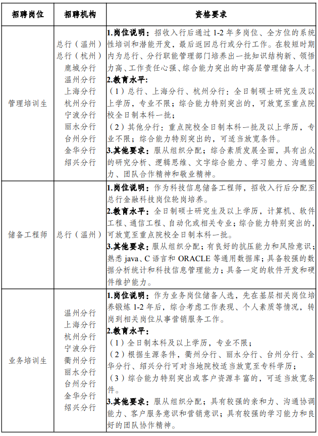 校園招聘 浙江 溫州 秋招 溫州銀行招聘