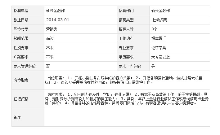 [福建]廈門銀行新興金融客戶經理招聘公告