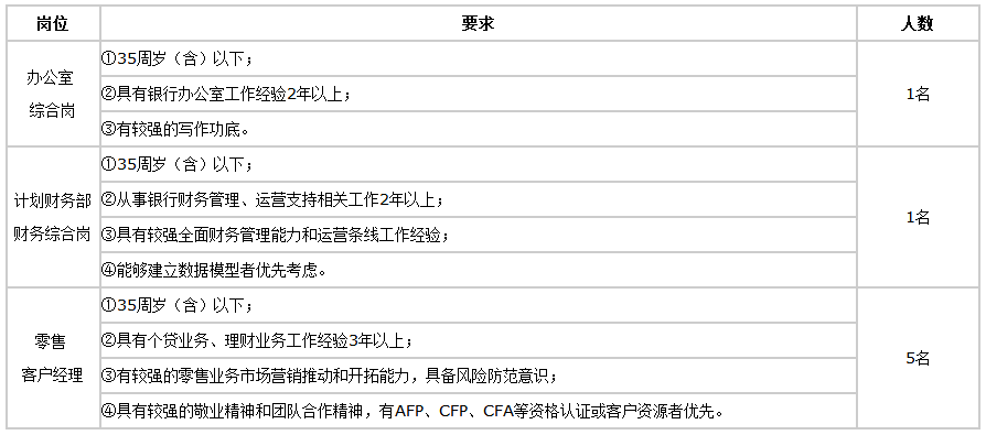 ③應(yīng)聘資料將進(jìn)入我行人才儲(chǔ)備庫(kù),恕不退還,敬請(qǐng)諒解;