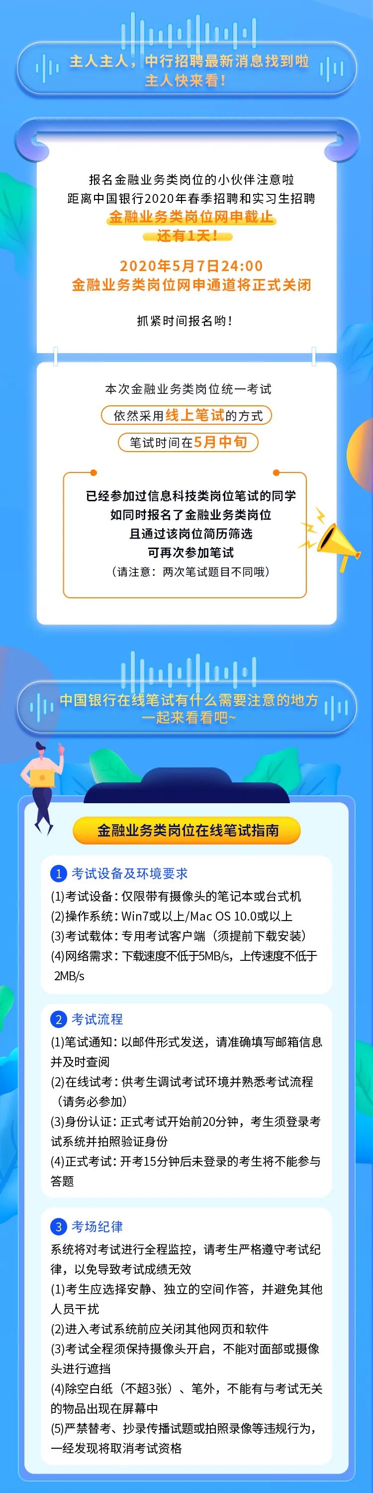 2020年中國銀行春季招聘和實習生招聘金融業務類崗位網申倒計時1天&筆試安排