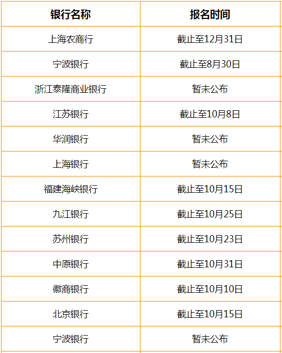 銀行招聘分為春季招聘和秋季招聘,雖然各大銀行報考時間都不同,但是根據往年的考試時間安排來看,秋招報名時間集中在每年的9-10月份,而春招的報名時間則集中在次年的2-3月份。