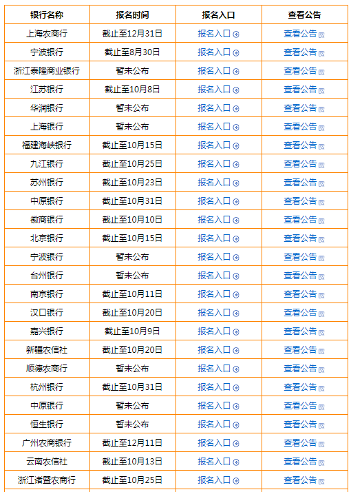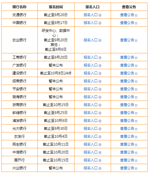 銀行考試網小編已經整理好了2021銀行秋招具體報名截止時間,快來看一看~