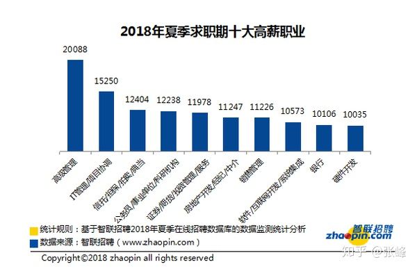 7月4日,智聯招聘發布《2018年夏季中國雇主需求與白領人才供給報告》,其中2018夏季求職期十大高薪職業,“銀行”以平均薪酬10106元排名第九。