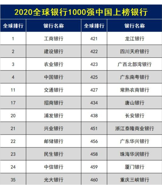 2020全球銀行1000強中國上榜銀行排行榜中,光大銀行位列第35名。