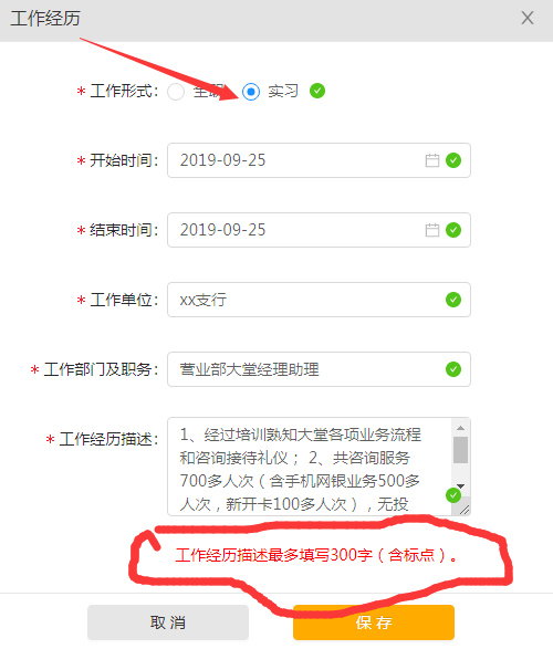 同時也是因為很多學生沒有正規的實習只有一些零散的兼職活動,這里的話就盡量寫和同學所報銀行崗位相關的一些兼職經歷,描述過程中注意用詞盡量用數據和技能說話。