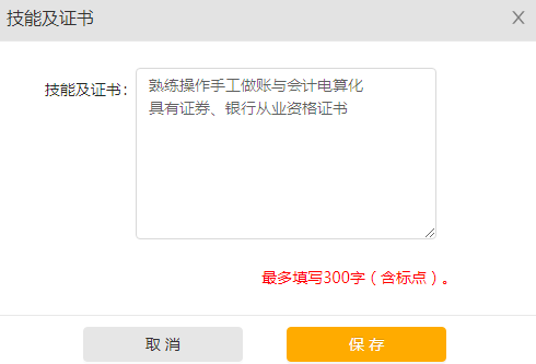 例如會計專業技能擅長手工做賬、熟練操作會計電算化,有一定建模能力...