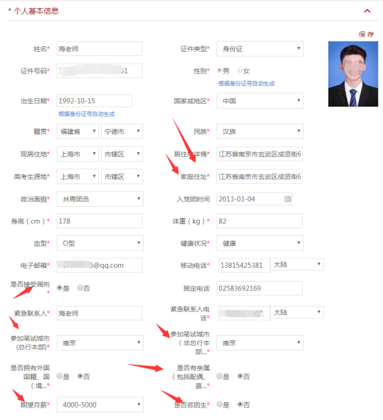 “現居住城市”:這個顧名思義,不過填寫時候有一個技巧,那就是這個地址是你所報崗位所在區域的地址,為啥呀填崗位所在地,因為相對穩定以及具有當地資源,這是銀行方所喜歡的。
