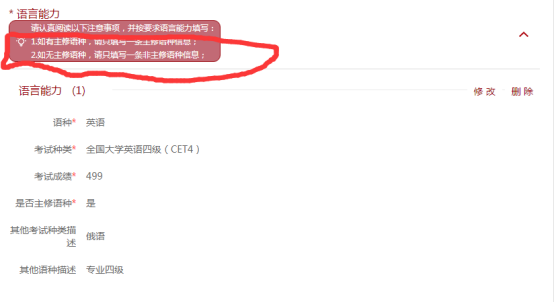 一般大家都考英語四級的直接填英語即可,當然還修了其他小語種也可以加上。