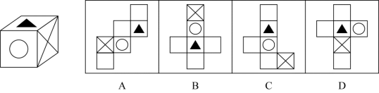【答案】C。【東吳教育解析】以三角形面為起點,圓形面為路徑,叉叉面為終點畫時針,題干中為逆時針方向,C選項為逆時針方向,而D選項為順時針方向,故C選項正確、D選項錯誤;A、B選項中叉叉面與三角形面互為相對面,相對面有且只能出現(xiàn)一次,與題干不符,均為錯誤選項排除。所以本題答案為C選項。