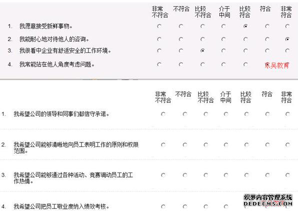 請注意:一組題目中每句描述都必須選擇不同的評價。只有完整作答問卷,才能獲得本部分成績。