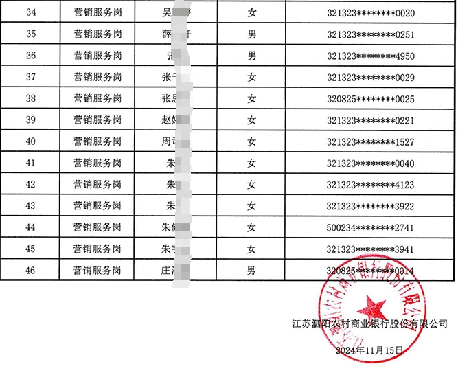 原標題:江蘇泗陽農村商業銀行2025年校園招聘入圍面試人員名單公示