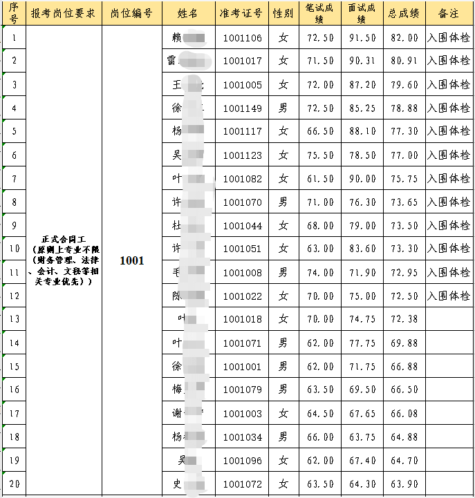 1.考生筆試、面試成績各占50%,總成績按報考崗位從高分到低分確定體檢入圍對象,入圍比例為1:1.2;