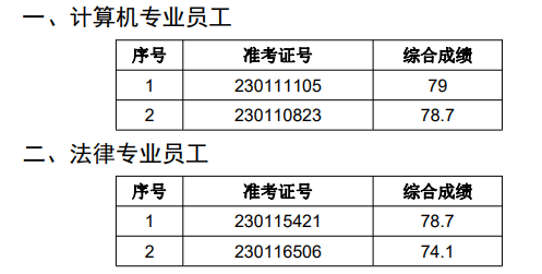 根據(jù)本行 2023 年社會招聘簡章,按考生筆、面試綜合成績(筆試成績占比 60%、面試成績占比 40%)排名,現(xiàn)將擬錄用人員公示如下: