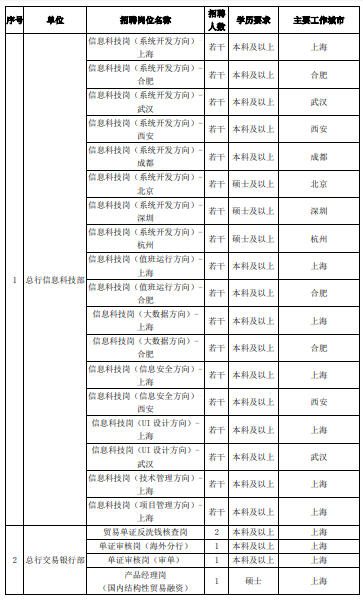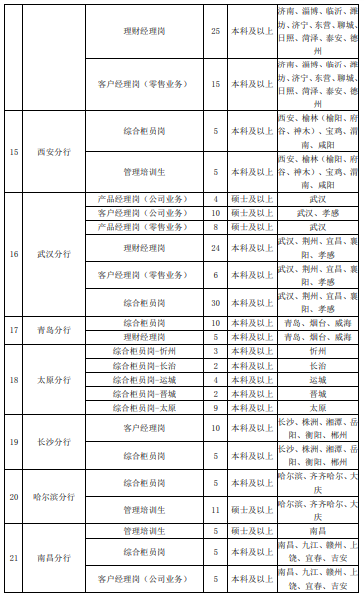 具體崗位及職位表請參考各分行招聘公告,詳見《2020年浦發銀行春季校園招聘公告匯總》。