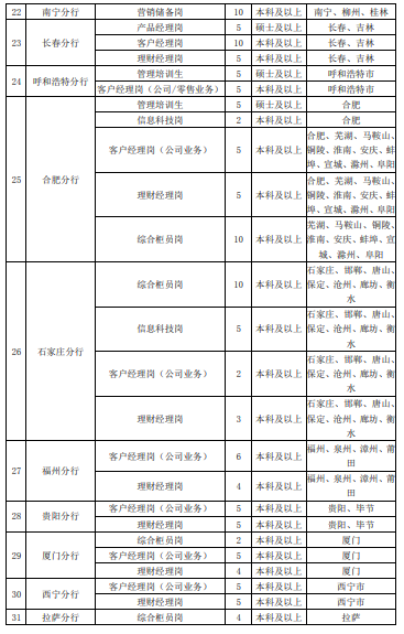 浦發銀行2020春季校園招聘職位表: