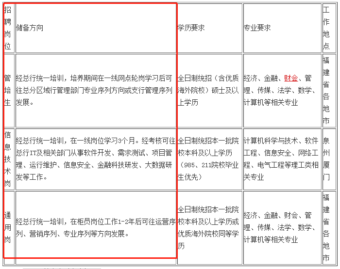具體崗位及職位表請參考招聘公告,詳見《2020年泉州銀行春季校園招聘公告》。