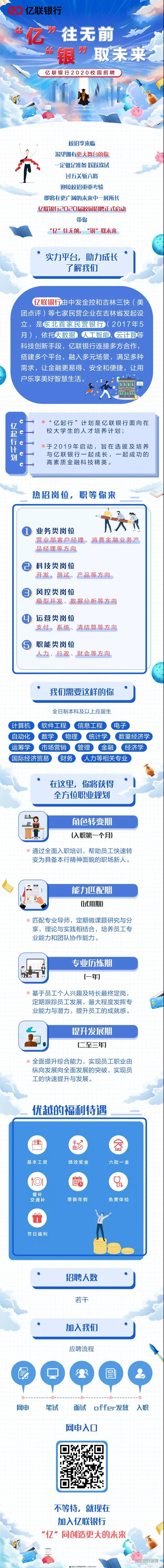 主頁 > 民營銀行招聘 > 億聯銀行招聘 > [全國]2020億聯銀行秋季校園招聘公告