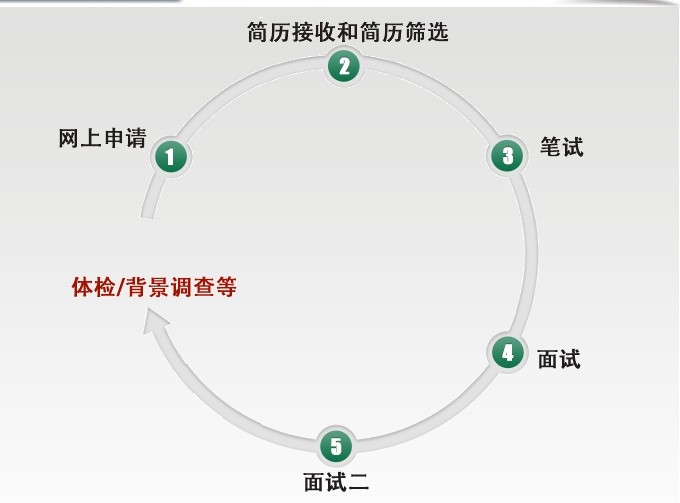 按照發(fā)布公告、網(wǎng)上報名、資格審核、筆試(專業(yè)素質(zhì)測試)、面試、背景調(diào)查、體檢、錄用等程序進(jìn)行。