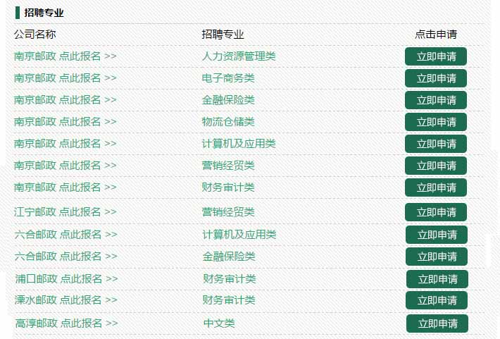 南京郵政及所轄縣(市、區(qū))分公司招聘條件: