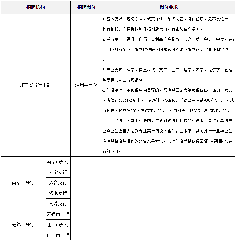 3. 中國(guó)郵政儲(chǔ)蓄銀行江蘇省分行對(duì)本次招聘享有最終解釋權(quán)。