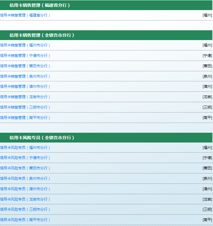 (一)信用卡銷售管理、信用卡風(fēng)險(xiǎn)專員為中國(guó)郵政儲(chǔ)蓄銀行福建省分行合同制用工。