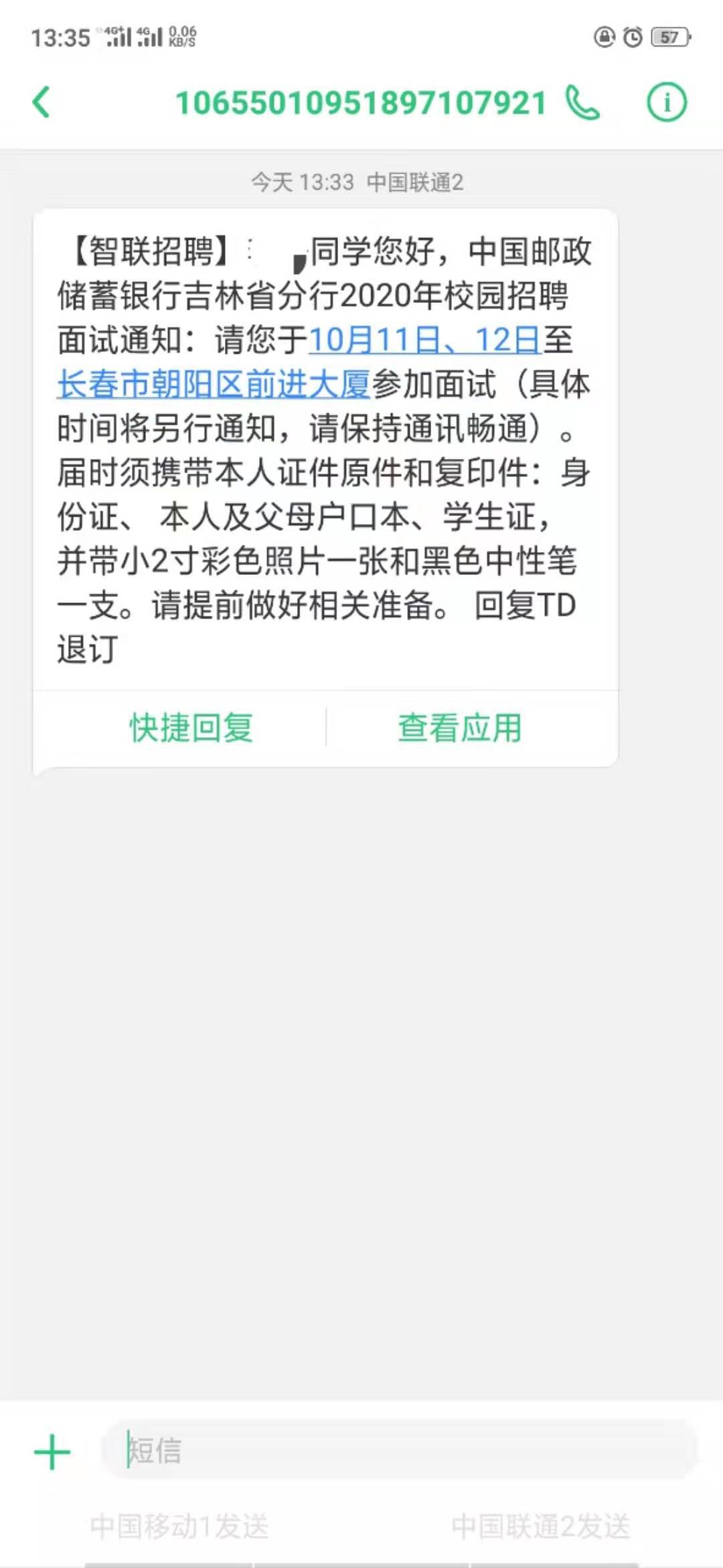 [吉林]2020中國郵政儲蓄銀行吉林省校園招聘面試通知