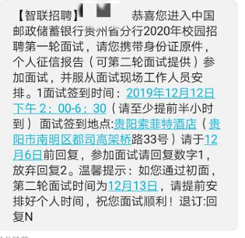 [貴州]2020中國郵政儲蓄銀行貴州分行校園招聘面試通知