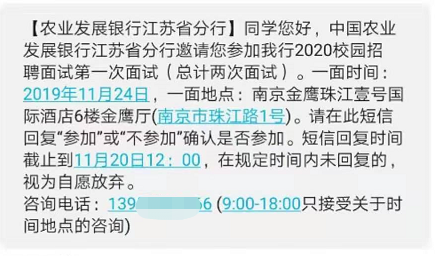 [江蘇]2020年中國農業發展銀行江蘇省分行校園招聘一面通知