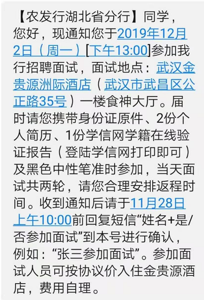 [湖北]2020年中國農業發展銀行湖北省分行校園招聘面試通知