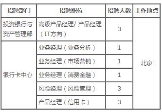 根據(jù)工作需要,中國銀行總行投資銀行與資產管理部、銀行卡中心現(xiàn)面向社會公開招聘12人,現(xiàn)就有關事宜公告如下: