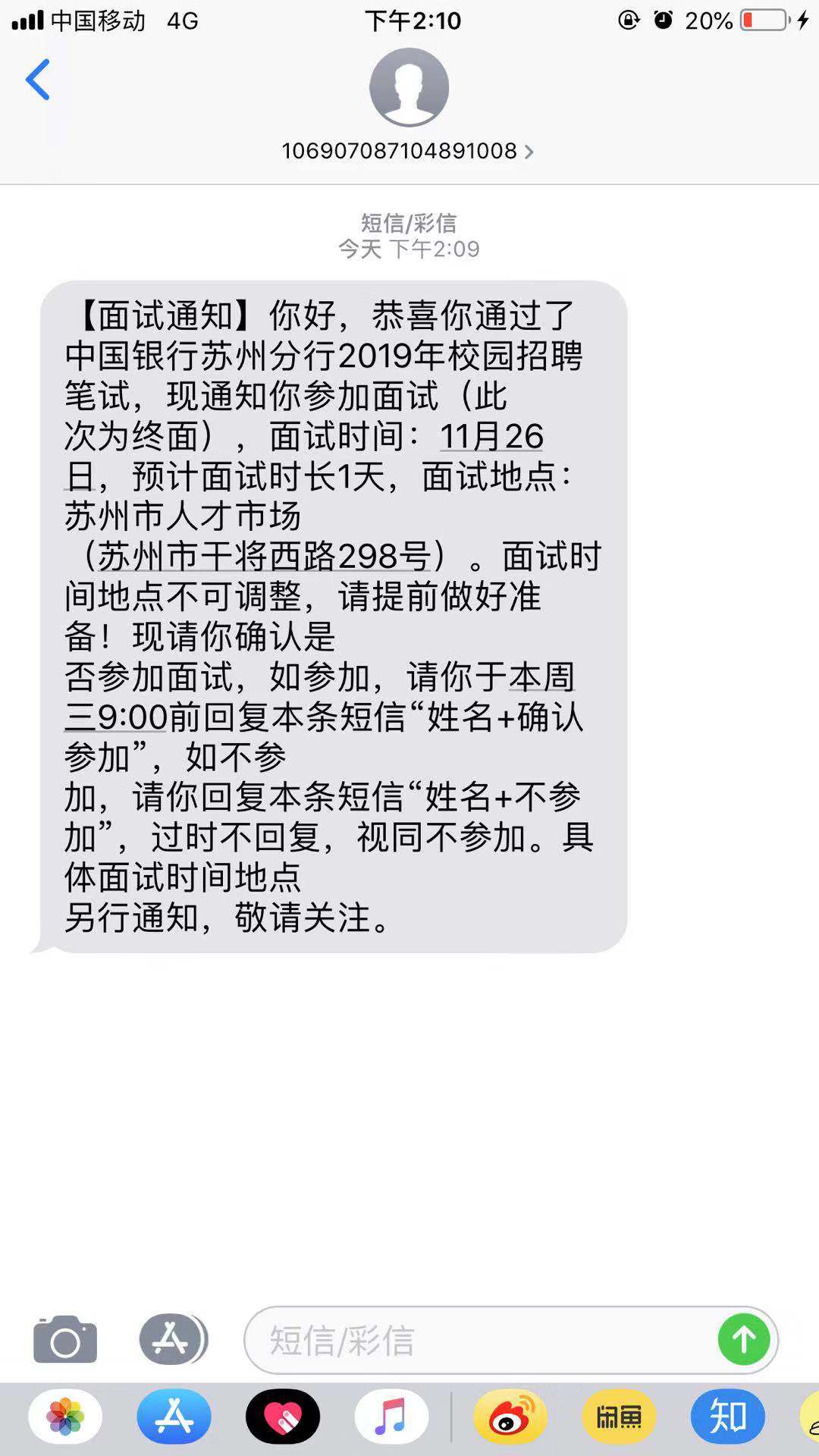 [江蘇]2019年中國銀行蘇州分行校園招聘終面通知