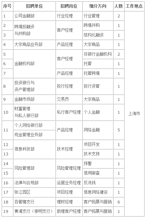 根據業務發展需要,中國銀行股份有限公司上海市分行(以下簡稱“中國銀行上海市分行或我行”)部分職位面向社會公開招聘,現就有關招聘事宜公告如下: