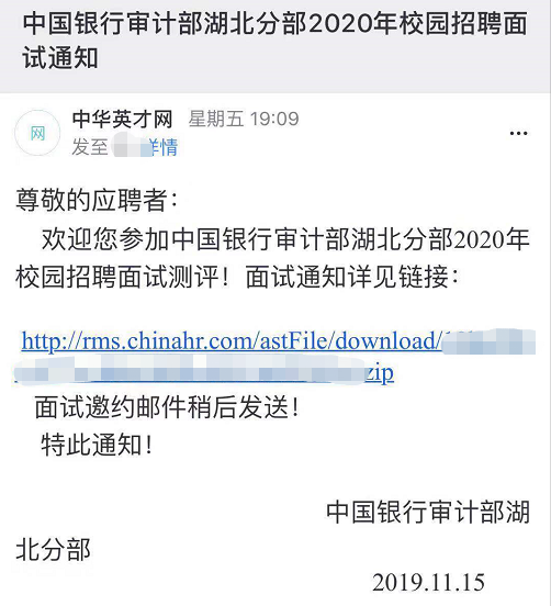 2020年中國銀行審計部湖北分行校園招聘面試通知