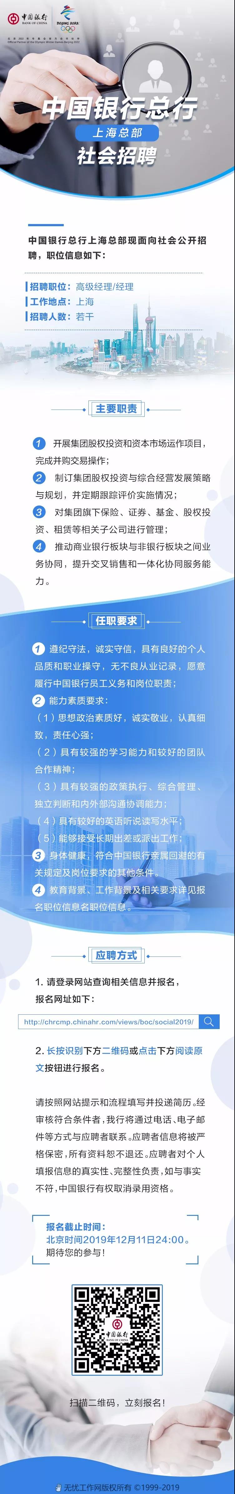 [上海]2019中國銀行總行社會招聘(上海總部)