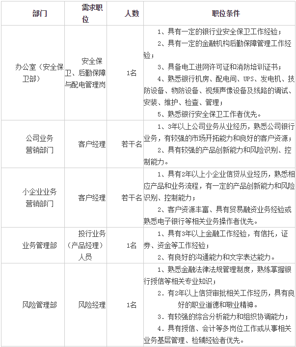 (二)經初審合格者將通知面試,未被錄用人員的材料我行予以保密并進入后備人才庫,恕不退還,歡迎有志之士踴躍應聘。