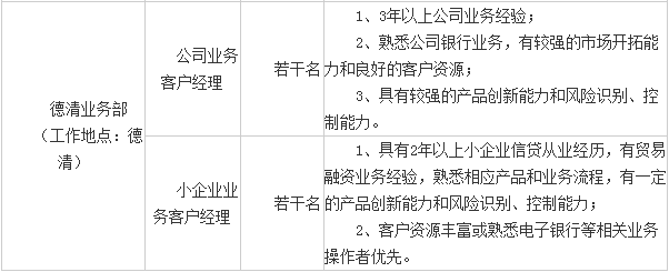 2016年浙商銀行湖州分行招聘公告