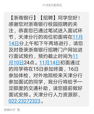 [天津]2020浙商銀行天津分行校園招聘面試通知