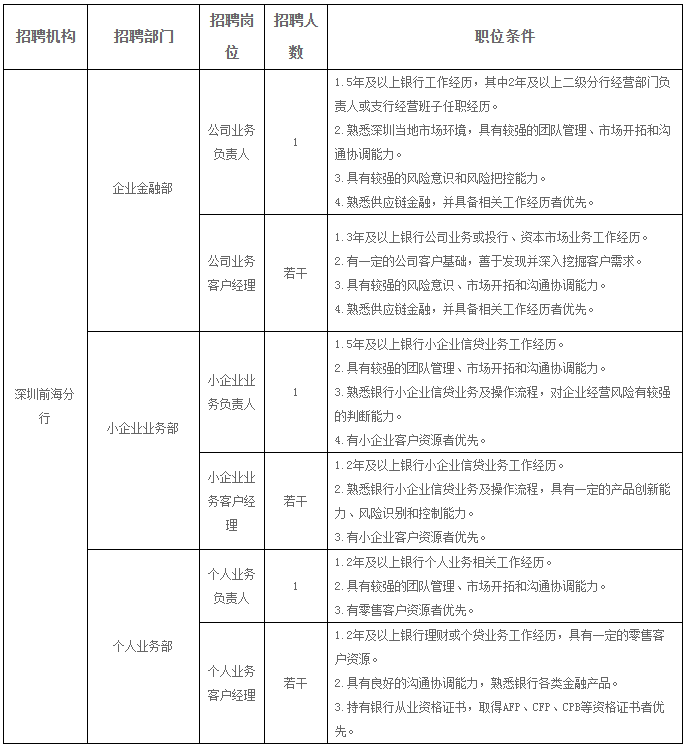 因業務發展需要,現面向社會誠聘金融人才。我們將為每位員工構建良好的職業生涯發展規劃,提供業內具有競爭力的薪酬福利待遇,熱忱歡迎有志之士和專業人才加入!