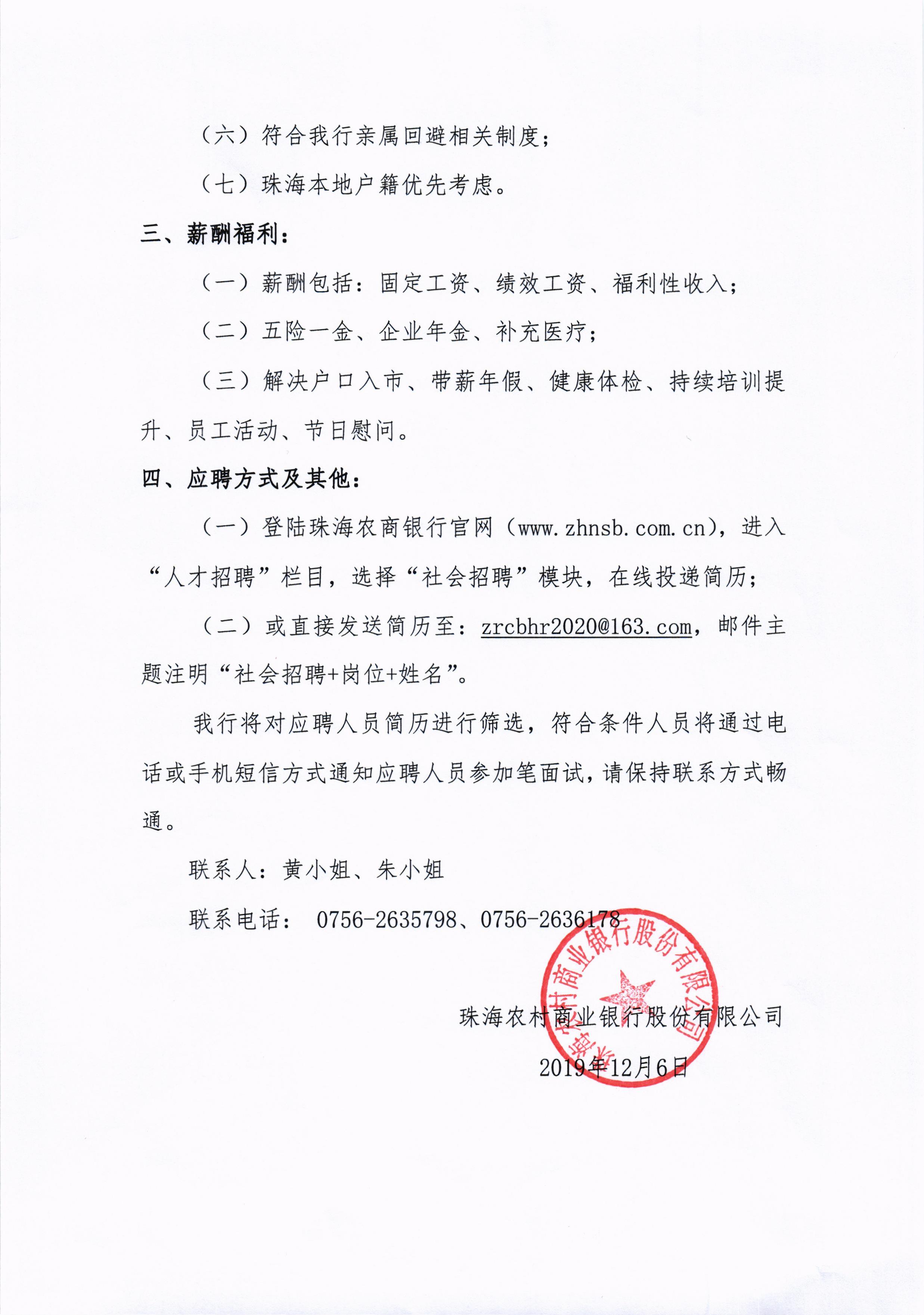 [廣東]2019珠海農村商業銀行社會招聘啟事