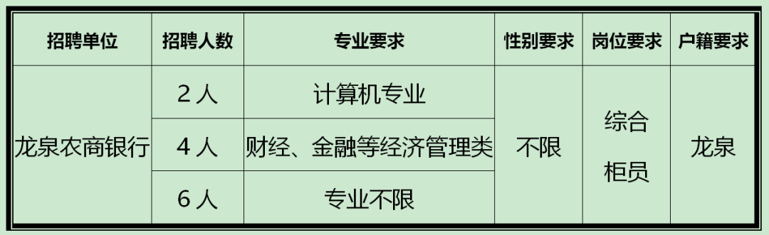 為滿足業務發展需要,在新時代普惠金融工作中提供更優質、更全面、更便捷的金融服務,龍泉農商銀行按照“公開、平等、競爭、擇優”的原則,向社會公開招聘各類人才,歡迎有志于投身農商事業的優秀人才加入我們,共同打造龍泉人民的滿意銀行! 現將有關事項公告如下: