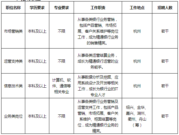 招商銀行招聘”微信公眾平臺,點擊“校園招聘”,查看杭州分行及下轄分行招聘職位并投遞簡歷。